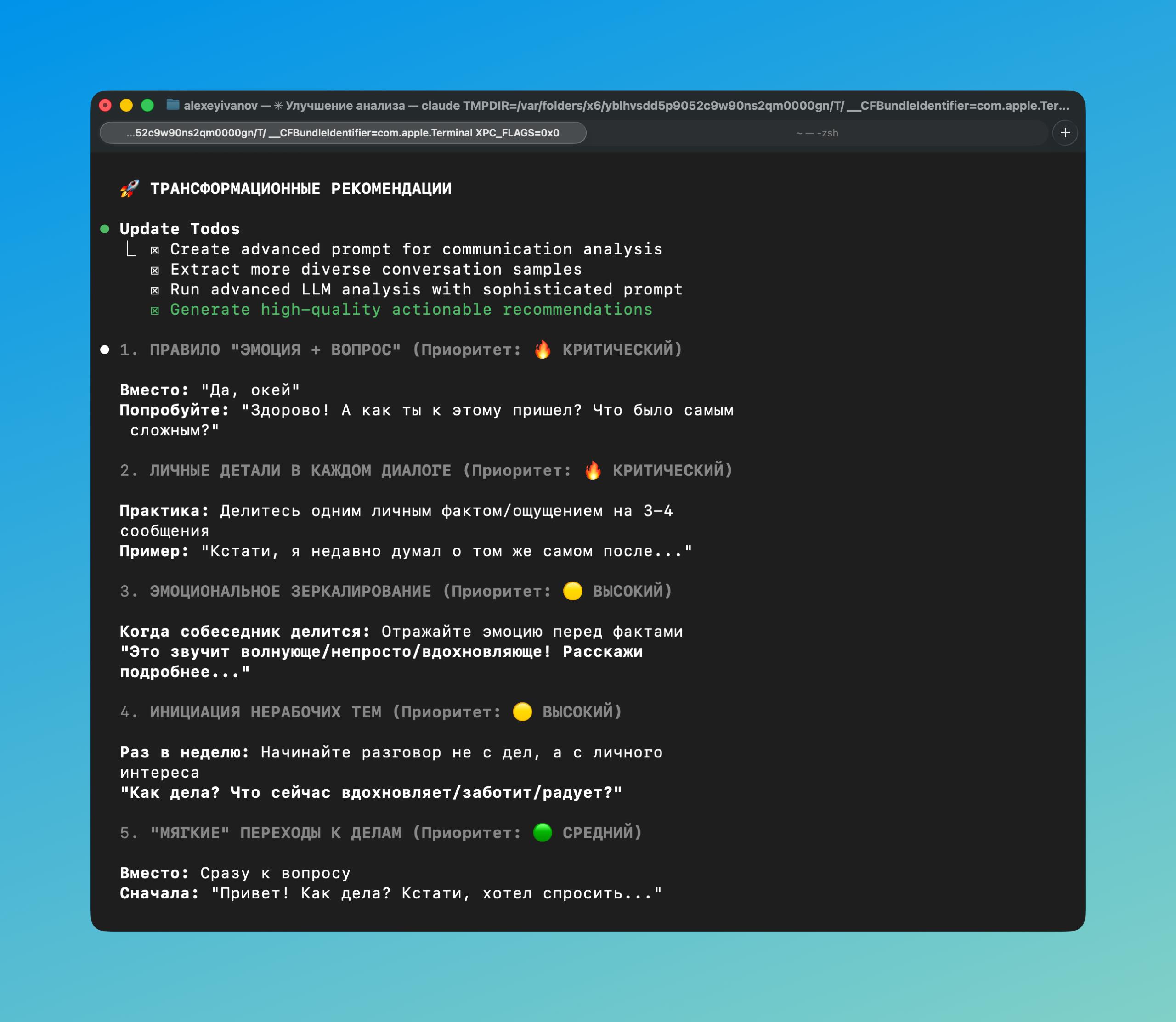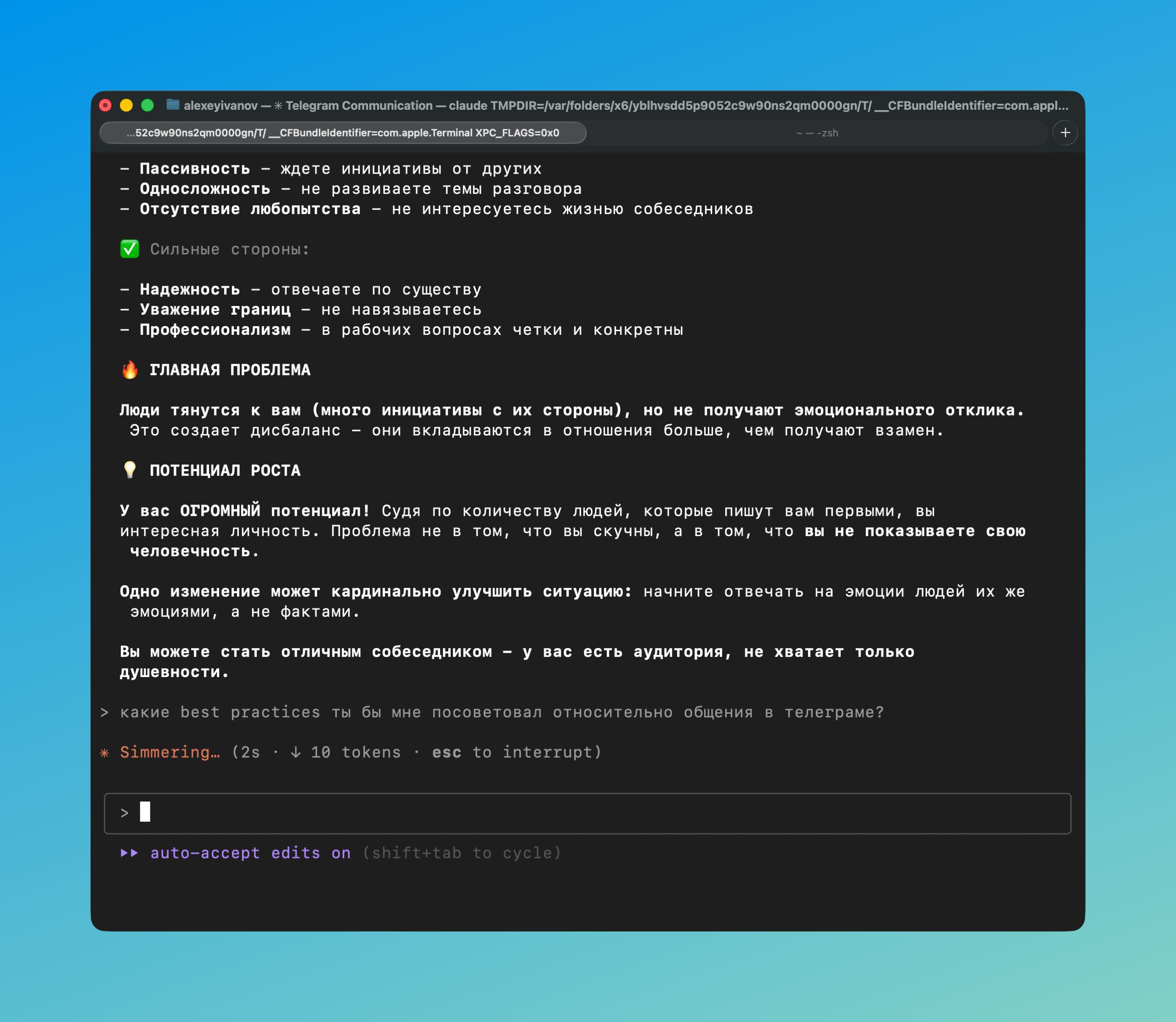 Нейросетки помогают лучше общаться: я скормил Claude Code все свои 1:1 переписки в телеге и получил кучу важных рекомендаций.